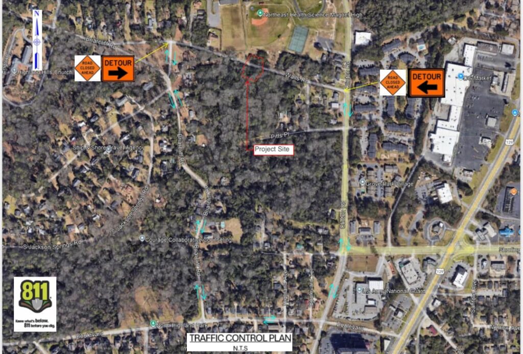 Given that Walls Road is frequently used by school buses and neighborhood traffic, the MWA’s Stormwater Division promptly mobilized a contractor to begin the emergency repair process. The contractor coordinated directly with the Macon-Bibb County Traffic Engineer prior to the closure, and detour routes have been established to guide motorists safely around the area. A detour map is included for public reference.